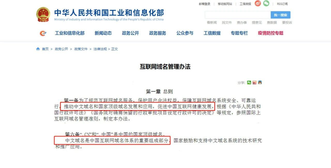 中華人民共和國工業(yè)和信息化部令第43號公布了新的《互聯(lián)網(wǎng)域名管理辦法》,里面強調說明了推動中文域名和國家頂級域名發(fā)展和應用。由于英文域名的根服務器在國外,使我國抵御大規(guī)模“分布式拒絕服務”攻擊的能力不足,為我國互聯(lián)網(wǎng)安全帶來隱患,中文域名的推出不但能方便用戶使用,更是起到提升我國互聯(lián)網(wǎng)安全和自主權的重要作用。