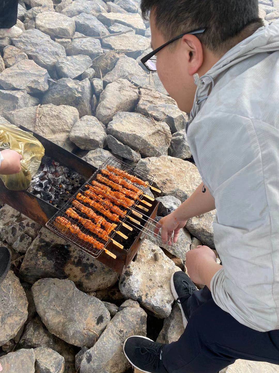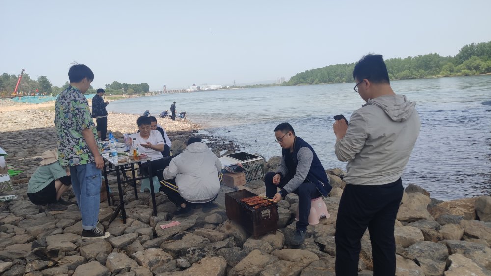 周六早8:30 大家于上班時間在公司集合后,就帶著我們的燒烤工具到黃河小浪底附近集合。
